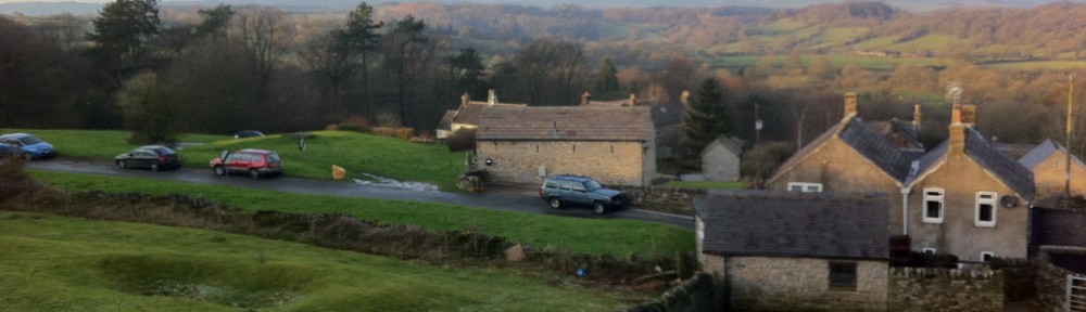 Winster is still a lovely place to stay, even in the middle of a grey and chilly weekend a week or two before Christmas. Winster has its Christmas tree up and ready to be switched on, which took place Sunday 9 December. Photos (apols for the fuzzy pictures) are from the top of the village across to Birchover and beyond. If you squint you can see the hills in the distance are covered in snow.